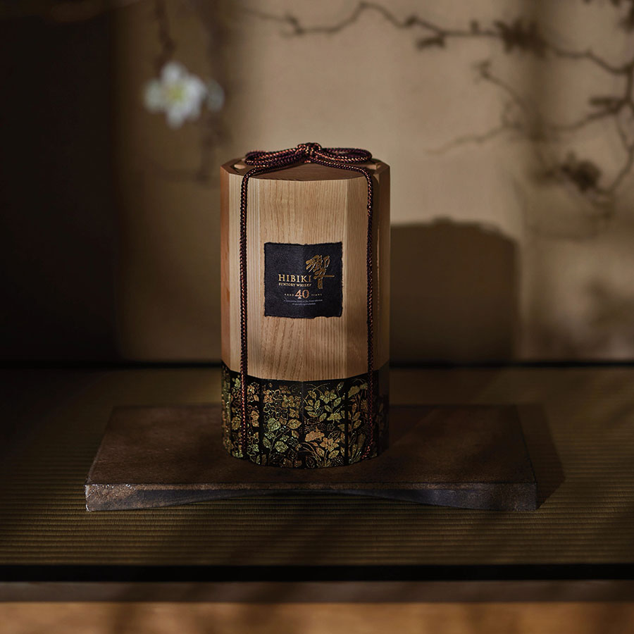 Dans un hommage à la tradition japonaise, Suntory a collaboré avec l’artiste washi Eriko Horiki pour concevoir une étiquette artisanale, véritable œuvre d’art, ornant la boîte du Hibiki 40 ans d’âge.